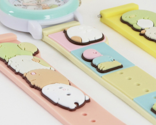 子どもに大人気の「すみっコぐらし」のキッズサイズ腕時計。ラバー立体ベルトのため、可愛いキャラクター達が3Dとなっています。ベルトはピンク・水色・黄色の3色の中からお好きな色を組み合わせることができます。