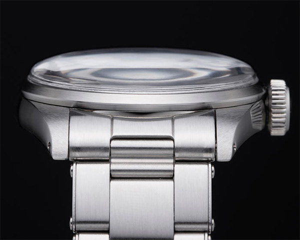 アンティークウォッチに見られるドーム状にふっくらしたプラスチック風防を採用。そのドーム状も1960年代当時のような雰囲気になるよう、ベゼルからの高さを4mmとしてその形にこだわっている。