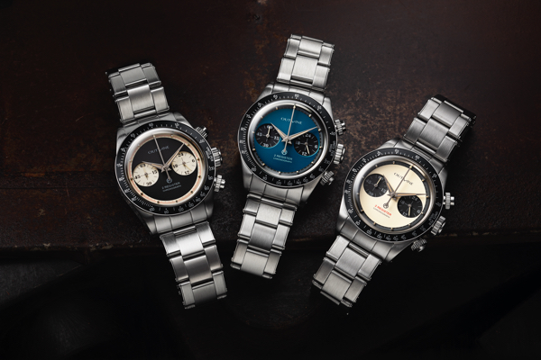防水機能を有した世界初のクロノグラフとして1970年代に登場した手巻きの傑作モデルをデザインモチーフに、当時の雰囲気はもちろんのこと、ケースサイズなどにもしっかりこだわって作りました