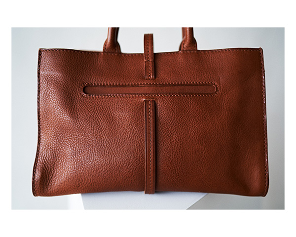 革という素材本来の美しさを楽しむことができるのが最大の特長で、ライフスタイルによって経年変化が色濃くでるのもこの素材の面白いところです。使ったら、その日のうちに柔らかい布で拭いて一日休ませる。そうすると傷やシミを防ぐことができます。