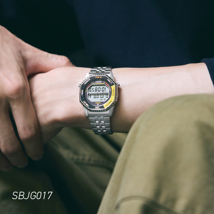 一般的なデジタルウォッチではボタンで機能の切り替えるのが一般的ですが、こちらのモデルはベゼルを回し機能を切り替えを行うので、操作性を高めるため、丸型ベゼルではなく八角形となっています。