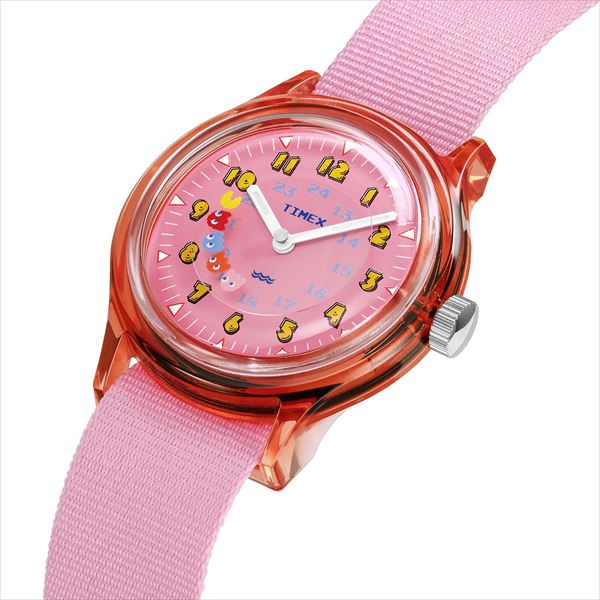 日本が生んだ世界的ゲーム&人気キャラクター「パックマン」とタイメックスのコラボレーション第3弾です。タイメックスの不朽の名作オリジナル・キャンパーをベースに、人気キャラクターやゲームで使用されているフォントなどすべてがパックマン仕様のスペシャル限定モデル。秒針の代わりにパックマンとゴーストがクルクル回転するディスクを採用、赤いブリンキーとブルーのインキーのカラーリングを軽量な半透明の36mm径樹脂製ケースで表現し、ミリタリーウォッチ由来の長さ調整が可能なナイロンストラップをあわせました。さらには世界初となる、ドイツのぬいぐるみメーカー「NICI(ニキ)」とのトリプルコラボレーションによる、パックマンに登場するゴーストの形をあしらった手触りの良いぬいぐるみポーチがパッケージの代わりに付属します。