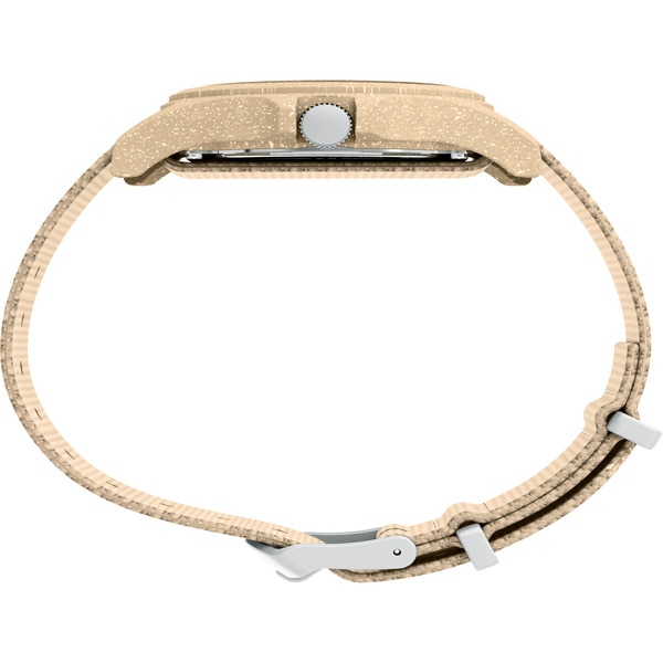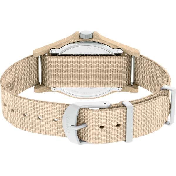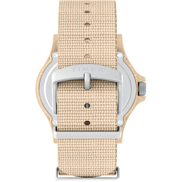 いつの時代も愛される永遠のスタンダードであるタイメックスの定番、オリジナル・キャンパーのDNAを受け継ぐ文字盤デザインをベースに、 リューズガードを設けた40mmの新しいケースと引き通しタイプのストラップを採用した「リクレイム オーシャン」。