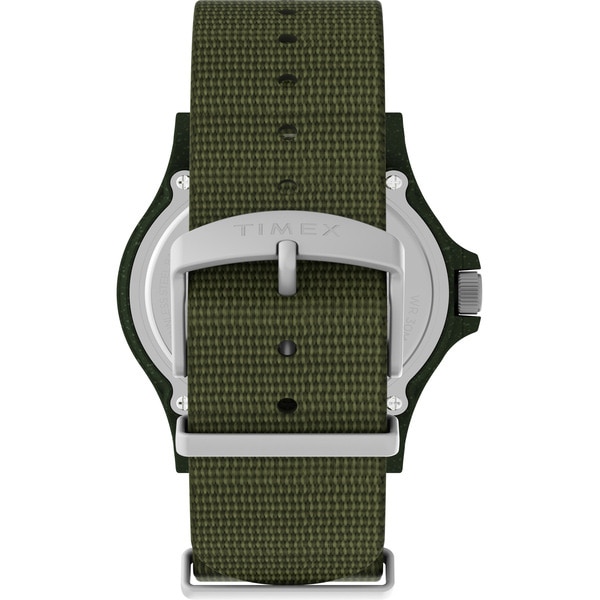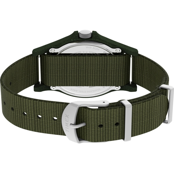 いつの時代も愛される永遠のスタンダードであるタイメックスの定番、オリジナル・キャンパーのDNAを受け継ぐ文字盤デザインをベースに、 リューズガードを設けた40mmの新しいケースと引き通しタイプのストラップを採用した「リクレイム オーシャン」。