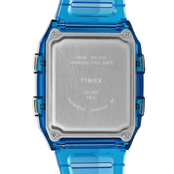 「Q LCA Transparent」は1980年代初頭に発売されたデジタル表示とアナログ表示を兼ね備えた「Q TIMEX LCA」をベースに、ノスタルジックながらも新しさを感じるフォルムや機能はそのままに、新たにスタイリッシュな半透明の樹脂素材をケースやストラップに採用しました。復刻にあたりオリジナル発売当初の液晶ディスプレイを再生産、ファッションにも合わせやすいカラーリングと素材使いでモダンなスタイルにアップデート。同時に軽量化を実現しました。TIMEX生誕170周年を記念して、スペシャル缶バッジが付属します。