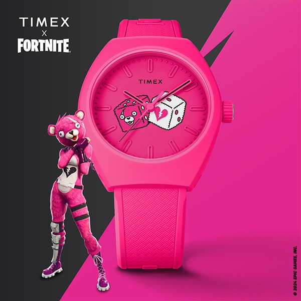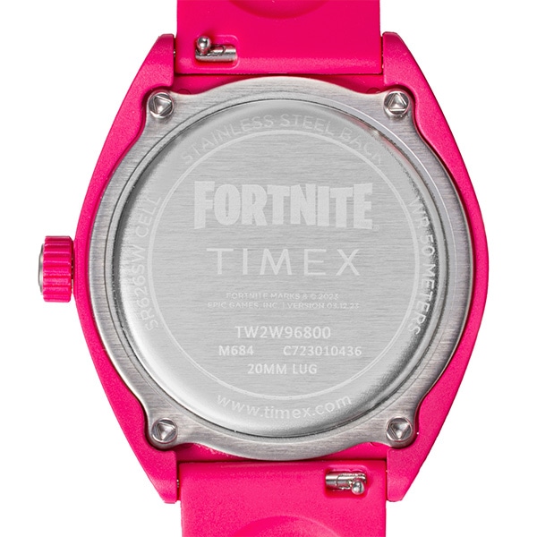 世界で約5億人がプレイする<フォートナイト>。このタイメックスとのコラボレーションモデルでは、地球に優しいセラミックとヒマシ油との特別な配合によるエコセラミックをケース素材に採用。