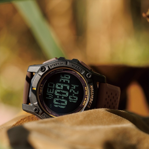 キャンパーやアイアンマンなどのモデルに隠れて密かな人気モデルとなっているのが、ソーラー機能搭載のタイメックス。カラーリングや軽さなど、国産ブランドにはないデザイン性でも人気ですが、今期はデジタルのソーラーモデルが新登場。光源があれば光を取り込み充電できるので、スマートウォッチにつきもののバッテリー不足よりも格段に心配が少ないところがウケています。