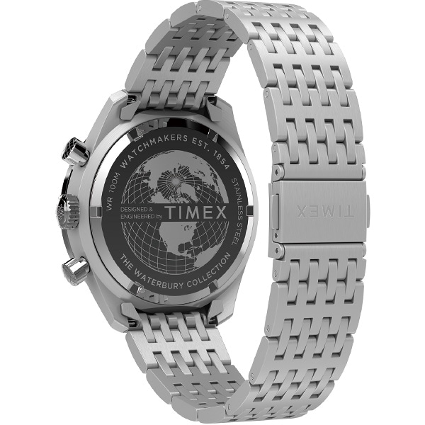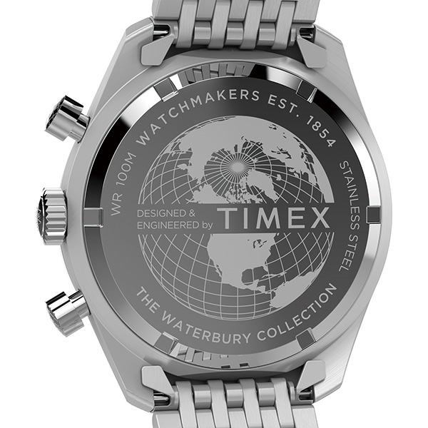 特にアメリカ本国で人気の高い<ウォーターベリー トラディショナル>のクロノグラフ。人気の秘密は大きすぎず小さすぎない41mmサイズと、この価格帯としては100m防水も備えケース仕上げなど高いクオリティであることがあげられます。派手さはなくとも日々使う上でのデザイン性と満足度が高い、それこそがタイメックスの真骨頂です。