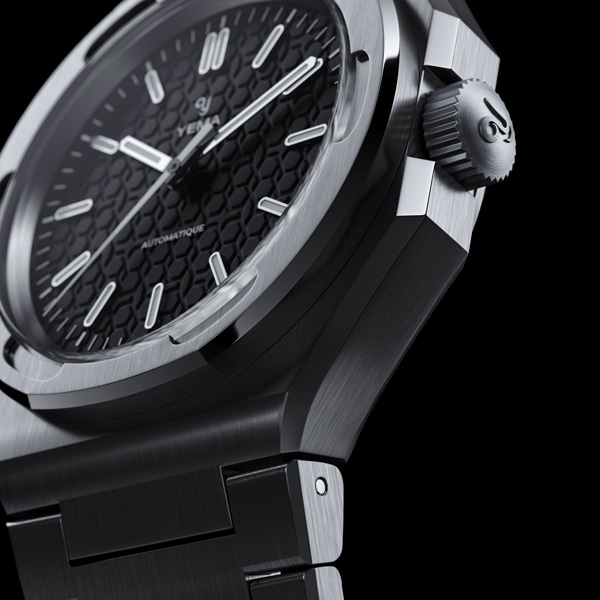 【Wristmaster Traveller】ブレスレット一体型を装備したイエマのアイコンモデル、リストマスタートラベラーがハニカムダイアルに洗練されたスティール製アプライドマーカーと針の装いも新たにドレッシーなコレクションとして再登場。快適な着け心地とエレガントな外観で日常使いのできるスポーツウオッチです。