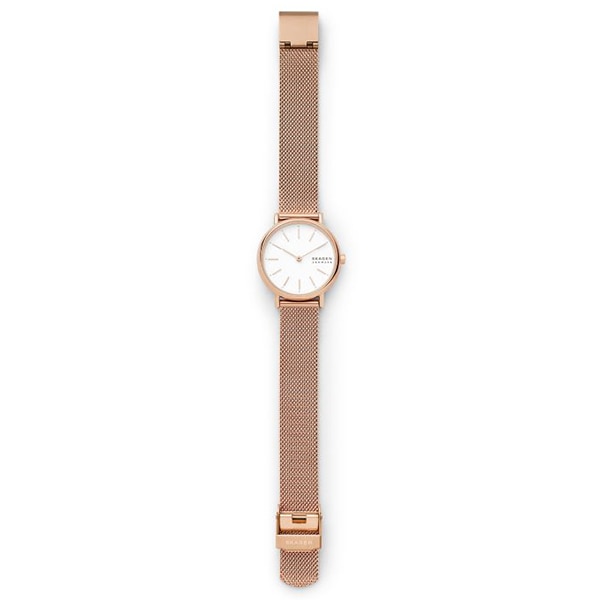 厚さ6mmの薄型ケースを採用した、流線型で女性らしいフォルムが特徴のスリムなモデルが登場。ローズゴールドのケースに、サンドブラスト加工のホワイトのダイヤル、肌馴染みの良いローズゴールドのメッシュブレスを組み合わせました。よりライトに、よりスリムに、よりライトなデザインになり、女性の手首を優しく覆うようなエレガントなルックスの逸品です。