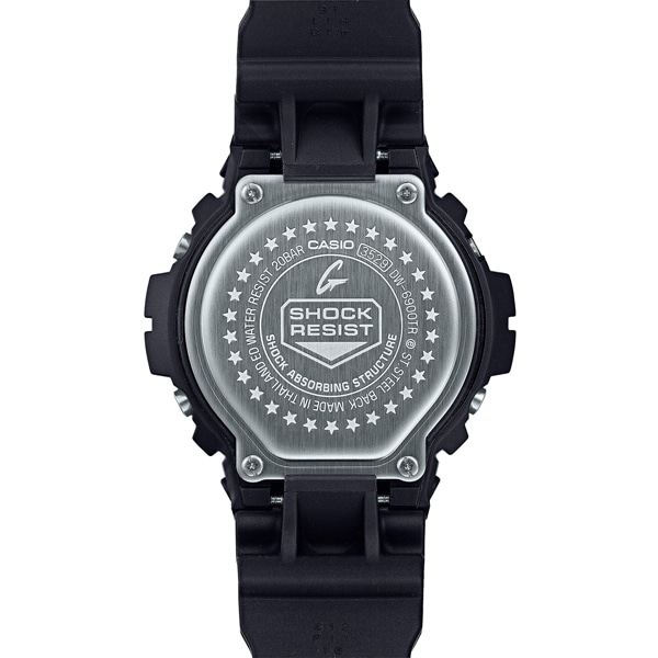 6900シリーズ30周年を記念し、DW-6900Hに採用されたブラック、レッド、イエローの3色をラインアップ。1995年の誕生以来、多彩なスタイルを展開する6900シリーズのルーツのカラーを再現しました。また、6900シリーズの30周年モデルにふさわしく、各パーツを特別仕様にしています。6900シリーズのデザインアイコンであるフロントボタンをメタル化し、ミラー仕上げの素材表面に刻まれた「G」マークが、ラウンドフォルムのなかで力強い存在感を放ちます。ELからLEDへ進化したバックライト点灯時には、6900シリーズのデビューイヤーである「SINCE1995」が液晶に浮かび上がります。加えて、SHOCK RESISTマークを刻印した裏蓋に、6900シリーズ誕生30周年を記念した★マークを30個レイアウト。パッケージには「G」マークをモチーフにしたDW-6900Hのパッケージデザインをオマージュ。ブラック、レッド、イエローの3色を取り入れたスペシャルデザインに仕上げました。また、ベゼル、バンドなどの主な樹脂パーツに、環境負荷低減への貢献が期待されるバイオマスプラスチックを使用。6900シリーズのアニバーサリーイヤーを飾る特別仕様のデザインです。