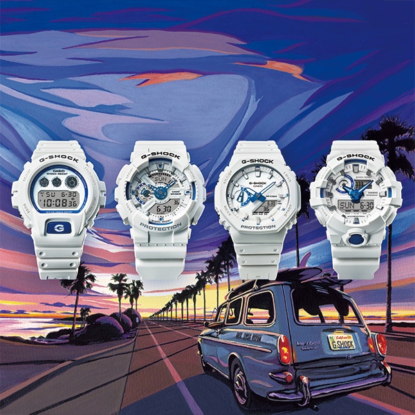 夏の海をイメージしたホワイト&ブルーのカラーリング、夜光虫が放つ幻想的な光を表現したブルー蓄光フェイスを備え、昼と夜で異なる表情を見せるビーチの情景を表現しました。特徴的なダイアルデザインを採用した各モデルの個性を、色と光で引き立てます。