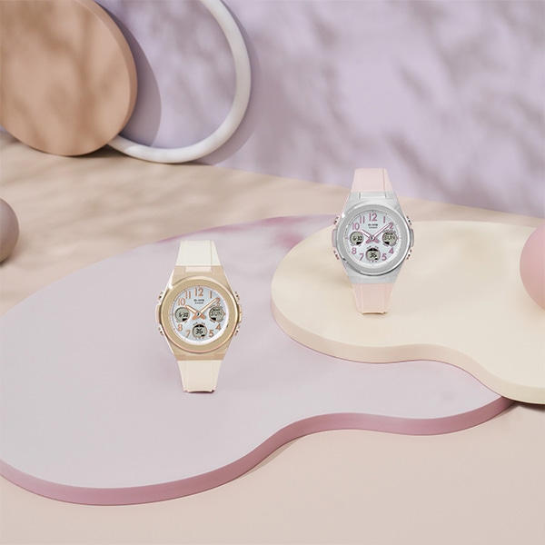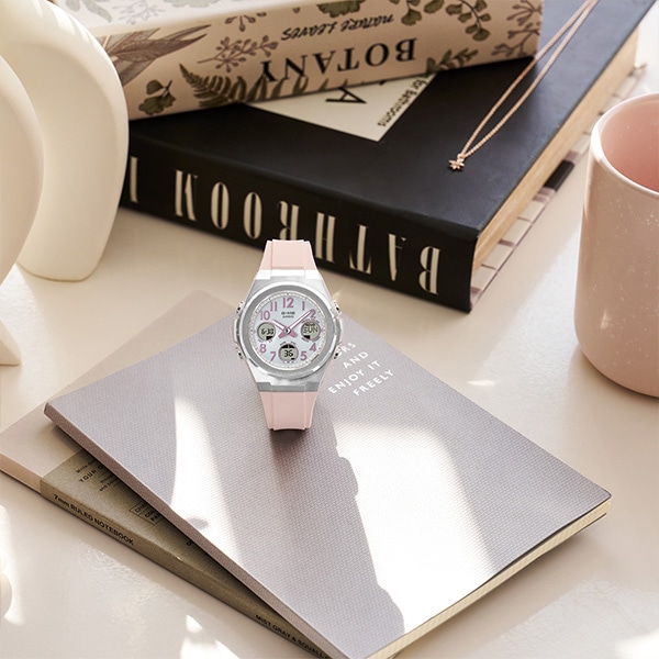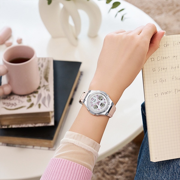 アクティブで洗練された女性に向けたBABY-G G-MS(ジーミズ)。視認性の良いアラビック数字をインデックスに取り入れたモデルに、上品で着けやすいニュアンスカラー2色が追加されました。