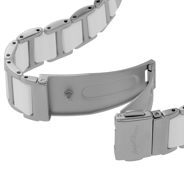 スポーティーなのにラグジュアリー。セラミック素材に加え、フェイスの厚みやねじ込み式風リューズがスポーティー感を増幅。文字盤の七色に輝く天然パールやスワロフスキー・クリスタルでラグジュアリー感をプラスします。ファインセラミックを使用しているので長期間使用してもキズがつきにくく、軽量のため着用しやすいのが特徴。