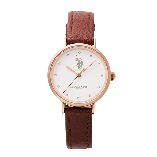 より女性らしい小ぶりな28㎜サイズ。インデックスには石をセッティングし、女性らしい腕元を演出します。ミニマムなデザインながらもPOLOロゴがしっかりとデザインされています。