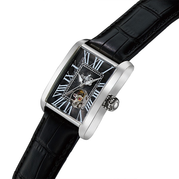 シンプルながらも存在感を放つ、クラシックなトノー型腕時計