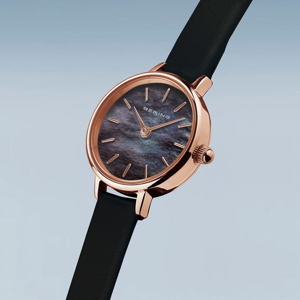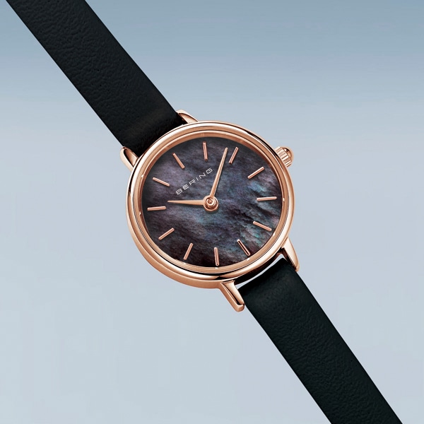 デンマークデザインらしいミニマルでクリーンな印象をもつクラシックコレクション。BERINGの中でも特に小さな22mmのケースに、幅6mmの細く繊細なストラップを組み合わせました。見る角度で表情を変えるパールのダイヤルを採用した3色は日本国内だけの限定カラーです。フラットで反射の少ないサファイアガラスを採用しながら1万円台で手に入る価格も魅力的です。
