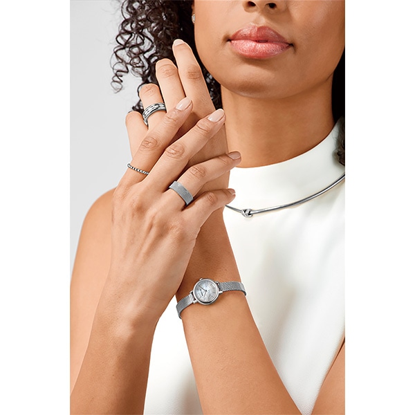 デンマークデザインらしいミニマルでクリーンな印象をもつクラシックコレクション。BERINGの中でも特に小さな22mmのケースに、幅8mmの細く繊細なストラップを組み合わせました。幻想的なパール文字盤見る角度で表情を変えるパールのダイヤルを採用。シンプルなデザインに程よいアクセントと個性を加えています。