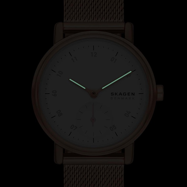 32mm径ケースに二針サブセコンドムーブメントを搭載した、KUPPEL LILLE。ホワイトのサンドブラストダイヤルに、ローズゴールドトーンのステンレススチールメッシュストラップを組み合わせました。ウォッチストラップは付け替え可能です。