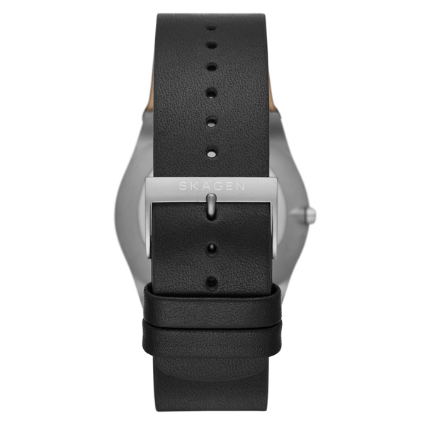 サンドブラスト仕上げのグレーのダイヤルに、ブラックのレザーストラップを組み合わせました。ウォッチストラップは付け替えできません。※経年劣化などによる交換はサービスセンターでの修理対応となります。