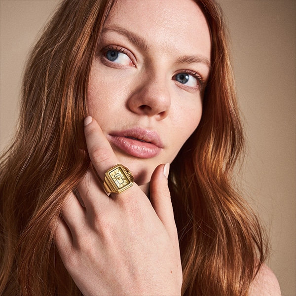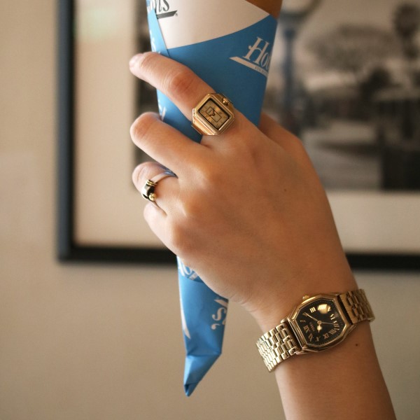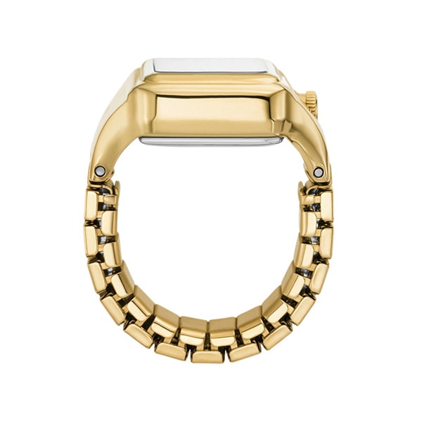 これまでにないスタイリッシュさが際立つRAQUELウォッチリング。ブランドのアクセサリーの中でも特にファンに愛されているアイテムです。人気のRAQUELウォッチにインスパイアされたレクタングルシェイプとサンレイ仕上げのゴールドトーンのウォッチフェイスが特徴で、どんな指にもフィットするフレキシブルなバンドを組み合わせました。