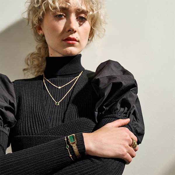 30mm径のケースに二針ムーブメントを搭載したHAGEN MICRO。光沢のあるグリーンのダイヤルに、ゴールドトーンのステンレススチールブレスレットを組み合わせました。