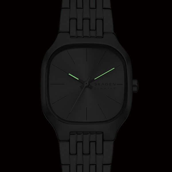 洗練されたモダンなデザインに仕上げたシルバートーンのステンレススチールウォッチ。存在感が際立つアイテムです。丸みのある28mmのスクエアケースに三針ムーブメントを搭載し、ゴールドトーンのサンレイダイヤルを組み合わせました。