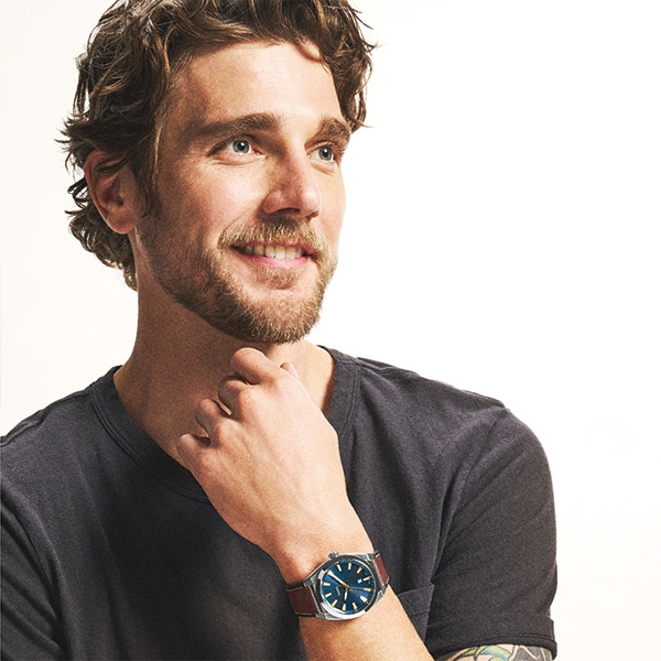 スポーティな雰囲気と洗練された魅力が調和したEVERETTウォッチ。印象的なブルーのサンレイダイヤルに、42mm径のステンレススチール製ラウンドケースを組み合わせました。上質なブラウンのレザーストラップを備え、クラシックなデイト表示付き三針ムーブメントがスケジュール管理をサポートします。ステートメントアイテムとして着けるのはもちろん、ドレスアップした装いにも最適。シーンを問わず活躍するウォッチです。Fossilのレザー製品は、Leather Working Group(LWG)を通じて責任あるものづくりを支援しています。
