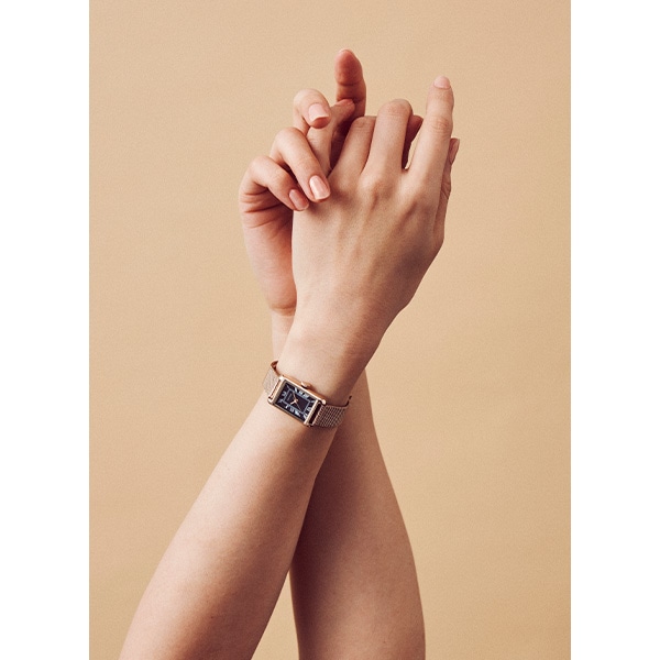 Tsukiコレクションセカンドシリーズ朧月(おぼろ月)ローマ数字のインデックスと美しいブルースチールがクラシックな雰囲気を演出し、細部までこだわった上品なデザインは、どんなシーンにもエレガントさをプラスします。