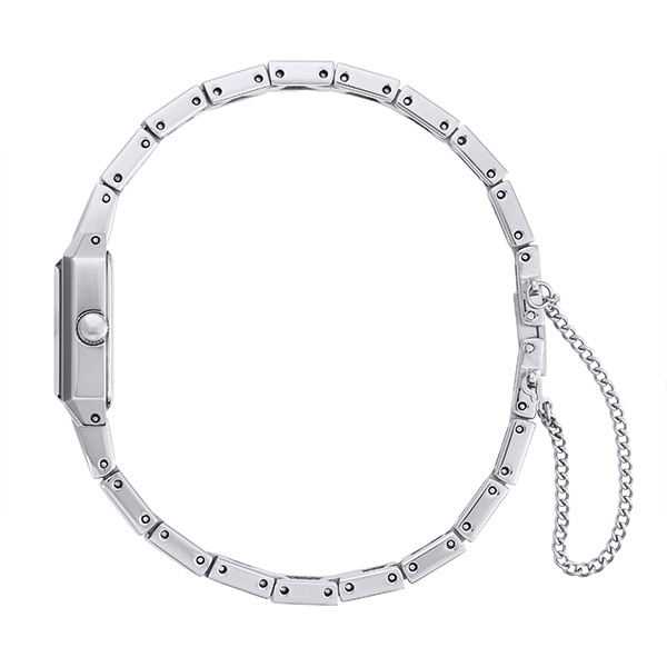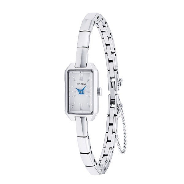 「清月 ミニスクエア」は、そんな静かに輝く月の情景を、時計のフォルムやディテールに落とし込みました。 細身のスクエアケースは、月が夜空に浮かぶ姿のように洗練され、無駄のないシルエット。文字盤の繊細なインデックスは、月光が水面に映るように柔らかな輝きを放ちます。また、青針のさりげないアクセントは、夜空の深い青を思わせる静謐な美しさを表現。細部までこだわり抜いた日本の職人技が、時を超えて愛される一本を生み出しました。 都会の喧騒から一歩離れ、自分だけの時間を静かに味わう大人の女性に寄り添う時計。移ろいゆく時間の美しさを、手元でそっと感じてください。