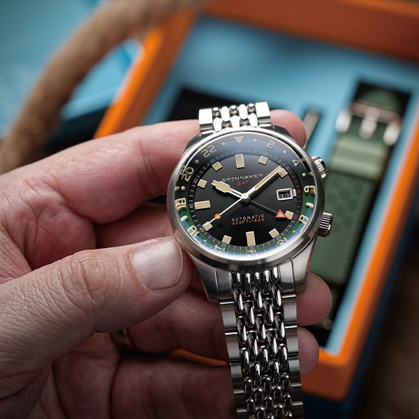 ケース内でベゼルが回転するコンプレッサーケースを採用したブラッドナーコレクションに、GMT機能を搭載したモデルが登場。歴史あるスタイルに高度な技術力が組み合わさった、唯一無二のタイムピースです。