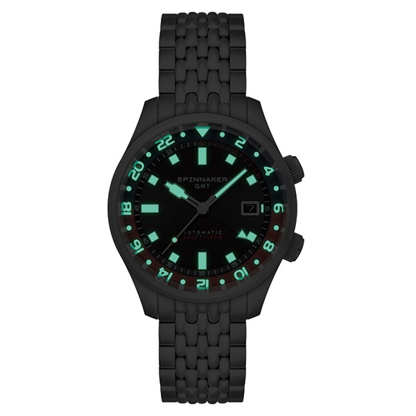 ブラッドナー GMT オートマティックにおいても、タイムレスな価値を生み出そうという精神は不変です。それは、ミニッツスケールの代わりに24時間目盛りを採用したインナーベゼルを見れば一目瞭然です。昼夜を分かつバイカラーに配色した上で、立体的に造形されたアラビア数字とドットをセット。屹立とした姿はインナーベゼルの傾斜によっても強調され、ケース内で優雅に回転する様子も楽しみになります。さらにはこの目盛りそのものが蓄光素材であり、暗所において力強く発光するさまは壮観です。