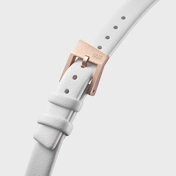 【ケースサイズ】横25.5mm バンド幅12.0mmKLASSE14の新コレクションSPIN(スピン)。スクエアケース・文字盤そのものをスピンさせると言う遊び心満載で大胆なデザイン。ケースは25.5mmとブランド最小のサイズです。カラーは人気のローズゴールド・シルバーのメッシュストラップ。新エレメンツを採用したマーブル文字盤のホワイト&ブラックレザーストラップの4色展開。レザーストラップは廃棄予定だった有機リンゴの皮を、アップサイクルすることで生まれたサステナブルなAppleskin(アップルスキンレザー)をKLASSE14で初採用。地球に優しいニューフェイス”SPINが発売です!