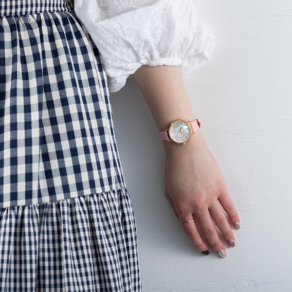 8角形ケースが目を引くVolare OKTO MOP(Mother of Pearl) モデルより、人気の文字盤Colorに春らしいレザーストラップを 組み合わせたNew Colorが登場!