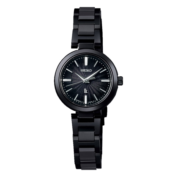 セイコールキアから、新しい小型のソーラーウオッチが登場しました。アクセサリー感覚で使える、ケース径23㎜の小ぶりなサイズ感と、機能を絞り込んだシンプルな姿が魅力なモデルです。ケースとストラップのシャープな造形が光を反射して、小さくても存在感のある仕上がりです。ダイヤルは新開発のシアー感のある仕上げ、奥行きがあり、繊細な模様をさりげなく楽しめます。