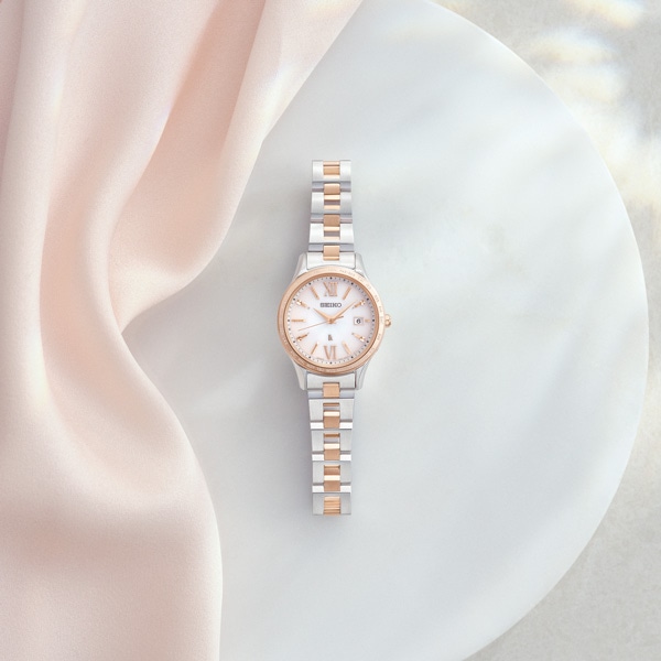 2018年に登場したベストセラーモデル・SSVV035シリーズ。人気のデザインはそのままに、ケース4時位置のボタン沈頭化により、シンプルなケースがさらにすっきりと生まれ変わりました。シンプルで無駄のないケースデザインはどんなファッションにも合わせやすく、大人の女性の幅広いシーンに寄り添います。一番人気のオールシルバーのモデルは、現行モデルと同様にフローズン加工のダイヤルを組み合わせ、シンプルな中に程よい煌めきと可愛さを表現しています。現行のルキア・ワールドタイム付ソーラー電波の中では最もコンパクトなケース(径27.5㎜、厚7.6㎜)、ブレスレットも細みのシルエット(本体駒10㎜)でワーキングシーンでも邪魔にならず女性らしく身に着けていただけます。