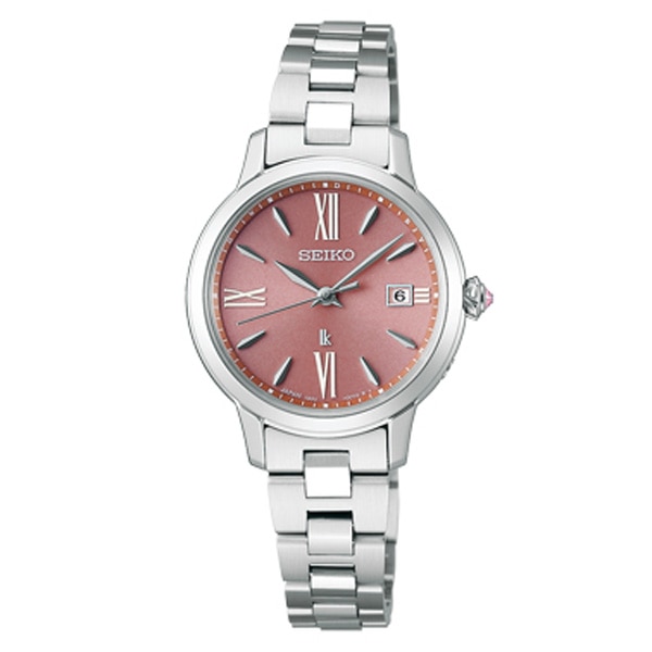 【備考】MADE IN JAPAN成長する女性を後押しするCollection【LUKIA Grow】から、23年トレンドカラーであり、カラーリリーのピンク色の品種である”Garnet Glowをテーマにしたモデルが登場しました。実在するGarnet Glowのピンク色、濃淡2色を各モデルに採用し、大人の女性らしい甘すぎない雰囲気に仕上げてあります。SSVW219は、柔らかく手元に馴染みながらも、洋服などのファッションを程よく盛り上げる大人のピンクダイヤルモデル。身に着けることで気分が上がる、ルキアだけの特別なカラーリングです。りゅうずは円錐状に広がるフォルムにカットを施しカラーリリーのフォルムを表現しています。テーマカラーに併せて、ピンク色のクリスタルガラスをセッティングしました。ケースは無駄がなくシンプルながらもすっきりとした美しさとひとさじの柔らかさを加えたデザインです。バンドは中ゴマ斜面がきらりと輝くデザインで、すっきりとした細身のシルエット。袖口へのおさまりがよく、腕元を綺麗に見せてくれます。
