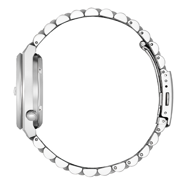 メタリックな質感の文字板に、シンプルな針とインデックスを組み合わせた3針タイプ。カレンダー部分には視認性を高める拡大鏡レンズを採用しています。文字板は、アイスブルー、グレーブルー、バイオレット、ダークグリーン、パステルピンクの5色展開。個性的なカラーの中から、自分らしい1本が見つかります。