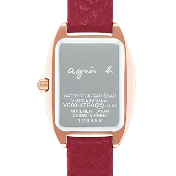 アニエスベーらしさが際立つユニークなトノーモデルが登場しました。アニエスベー本人がこだわったトノーケースに長方形ガラスというアニエスベーらしいエスプリを感じるユニークな形状が特徴です。人気の手書きアラビアを4か所にあしらったダイヤルレイアウトでさらにアニエスらしさを追加しました。りゅうずのクリスタルガラスがアクセントになっています。