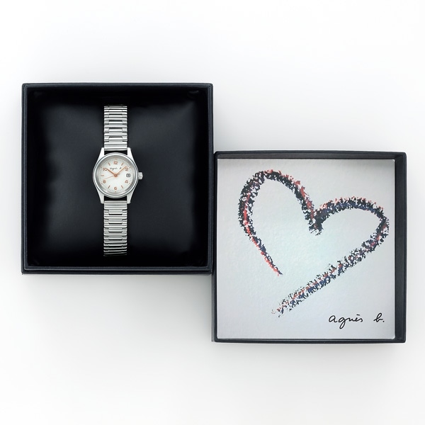 同時期に発売する「シネマデザイン復刻モデル」のエッセンスを取り入れたベーシックなモデルです。ダイヤルにはオリジナルモデルのインデックスを意識したアラビア書体を使用。バーインデックスとの組み合わせにより、すっきりした印象に仕上がっています。特徴的な細いピッチのメタルブレスレッドは、レトロクラシックな印象かつ着け心地の良さにもこだわっています。お客様自身でサイズ調節が可能な楽々アジャスト構造のため、ギフトにもおすすめしやすい商品です。クリスマス限定モデルは、クリーンな印象の白いダイヤル、ペアウオッチとしても提案可能です。限定モデルの裏ぶたには、「”un ? d'or(アンクルドール/優しい心)”」というスペシャルメッセージを刻印。限定BOXをご用意しています。