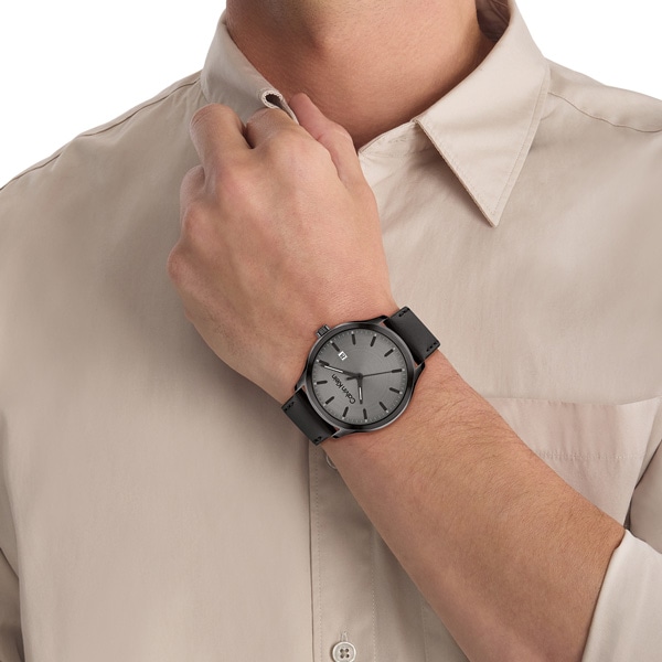 3針に日付の付いた実用性を兼ね備えたシリーズ。43㎜サイズは男性らしいスポーティなデザインです。