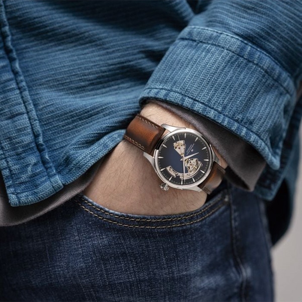 きらめくスモークダイヤルが、「ジャズマスター オープン ハート」の精巧なカットアウトへ視線を集めます。ムーブメントを垣間見ることができる魅力的な、このタイムピースのモダンなスタイルは、唯一無二であり、汎用性にも優れています。