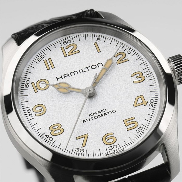 映画ファンにはアイコニックな存在の元祖「マーフウォッチ」が、モダンなアレンジを加えて登場。新しいアンティークホワイトのダイヤルにはグレイン仕上げが施され、カテドラル針がビンテージルックを添えます。ハミルトン愛好家にも、ハリウッドファンにも愛されるホワイトダイヤルの新モデルが、ブラックレザーストラップで登場です。