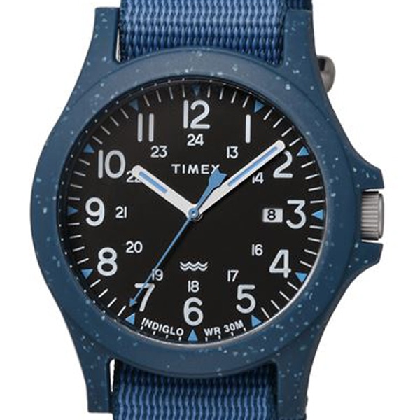 いつの時代も愛される永遠のスタンダードであるタイメックスの定番、オリジナル・キャンパーのDNAを受け継ぐ文字盤デザインをベースに、リューズガードを設けた40mmの新しいケースと引き通しタイプのストラップに海洋プラスティックを100%再生利用したスイス・タイド社の素材を採用。さらには普段使いにあると便利な日付表示を備え、デイリーにもアクティビティにも合わせやすいデザインとスペックを兼ね備えています。