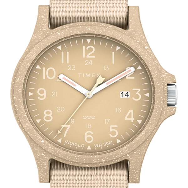 いつの時代も愛される永遠のスタンダードであるタイメックスの定番、オリジナル・キャンパーのDNAを受け継ぐ文字盤デザインをベースに、 リューズガードを設けた40mmの新しいケースと引き通しタイプのストラップを採用した「リクレイム オーシャン」。