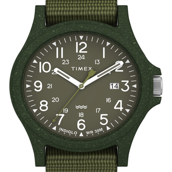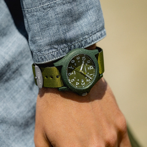 いつの時代も愛される永遠のスタンダードであるタイメックスの定番、オリジナル・キャンパーのDNAを受け継ぐ文字盤デザインをベースに、 リューズガードを設けた40mmの新しいケースと引き通しタイプのストラップを採用した「リクレイム オーシャン」。