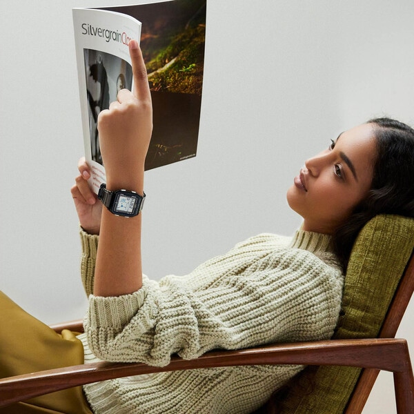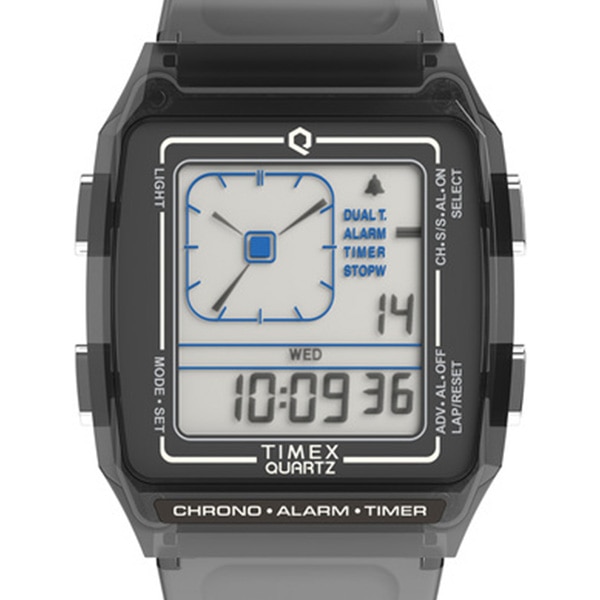 「Q LCA Transparent」は1980年代初頭に発売されたデジタル表示とアナログ表示を兼ね備えた「Q TIMEX LCA」をベースに、ノスタルジックながらも新しさを感じるフォルムや機能はそのままに、新たにスタイリッシュな半透明の樹脂素材をケースやストラップに採用しました。復刻にあたりオリジナル発売当初の液晶ディスプレイを再生産、ファッションにも合わせやすいカラーリングと素材使いでモダンなスタイルにアップデート。同時に軽量化を実現しました。TIMEX生誕170周年を記念して、スペシャル缶バッジが付属します。