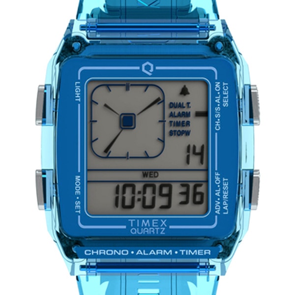 「Q LCA Transparent」は1980年代初頭に発売されたデジタル表示とアナログ表示を兼ね備えた「Q TIMEX LCA」をベースに、ノスタルジックながらも新しさを感じるフォルムや機能はそのままに、新たにスタイリッシュな半透明の樹脂素材をケースやストラップに採用しました。復刻にあたりオリジナル発売当初の液晶ディスプレイを再生産、ファッションにも合わせやすいカラーリングと素材使いでモダンなスタイルにアップデート。同時に軽量化を実現しました。TIMEX生誕170周年を記念して、スペシャル缶バッジが付属します。