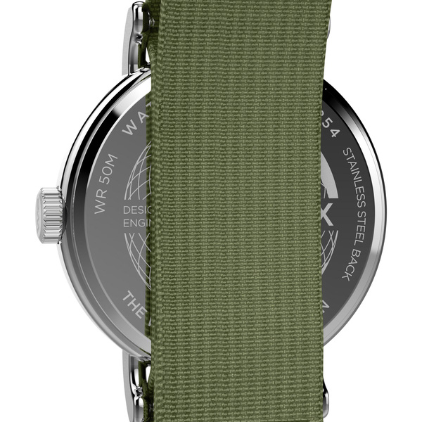 2011年にデビューするや世界同時にベストセラーとなったタイメックスの<ウィークエンダー>。優れたユニバーサルデザインのような見やすいデザインと引き通しのストラップ、そしてタイメックスの創業地に由来した真鍮をあえてケース素材に用いたストーリー性で新たなタイメックスファンを獲得し、定番の仲間入りを果たしました。これまで40mm、38mmと31mmしか存在しなかったウィークエンダーに初めて37mmモデルが登場。新たに設けられたデイト表示は拡大窓が付き、文字盤全面が光るインディグロナイトライトは維持しながらシェイプが一新された時分針に蓄光塗料を塗布、ストラップにはサステナブルナイロンまたはレザーを採用。このアップデートで初めてモデル名の<WEEKENDER>が文字盤に入り、数字も新しいフォントになりイメージが進化を遂げました。もちろん、ケース素材は引き続き真鍮製です。