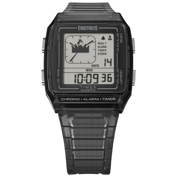 世界で約5億人がプレイする<フォートナイト>。このタイメックスのレトロだけれども新鮮なデザインの<LCA>は、カジュアルな服装にもあわせやすく、半透明なケースとストラップがちょっと普通の時計とは違うところがポイント。自分らしい恰好やプレイこそ醍醐味。